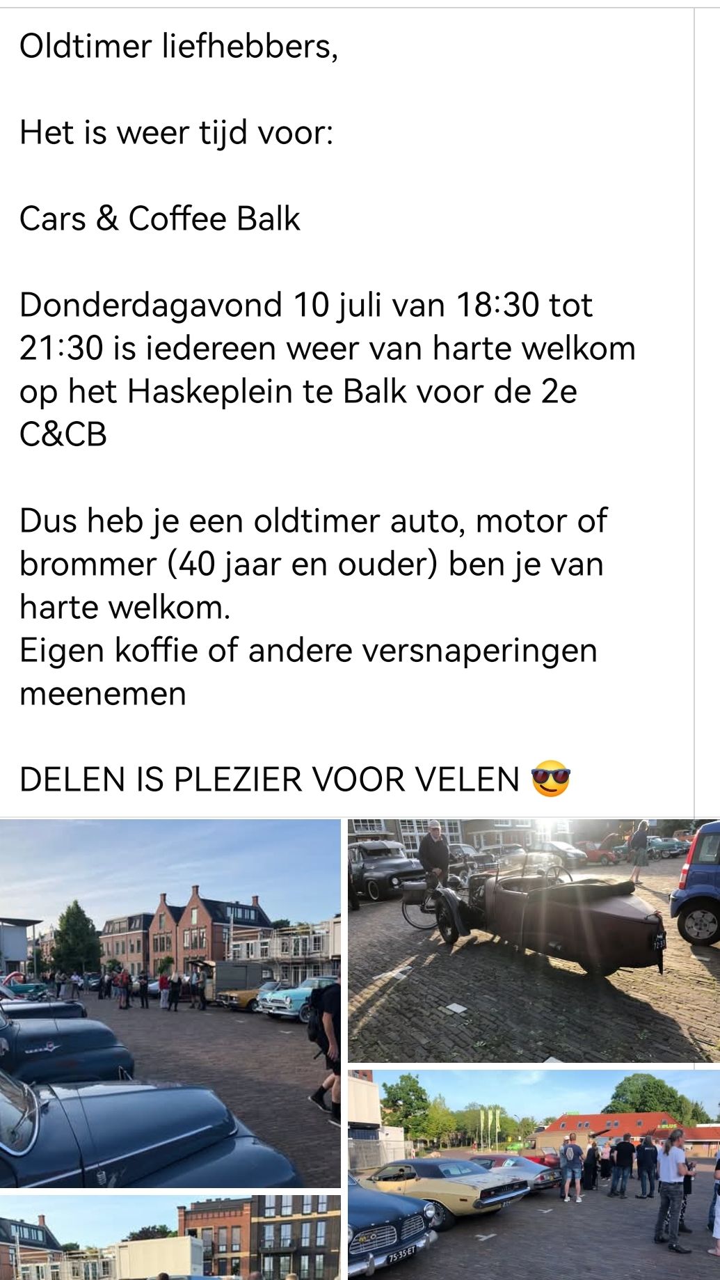 Heb je een oldtimer auto, motor of brommer (40 jaar en ouder) dan ben je van harte welkom.