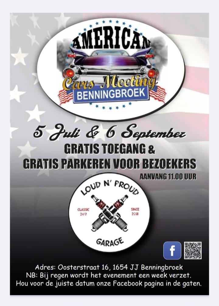 Amerikaanse auto's, burnouts, marktkramen en levende muziek. Het wordt weer reuze gezellig! Tot ziens op de Oosterstraat 16 in Benningbroek.