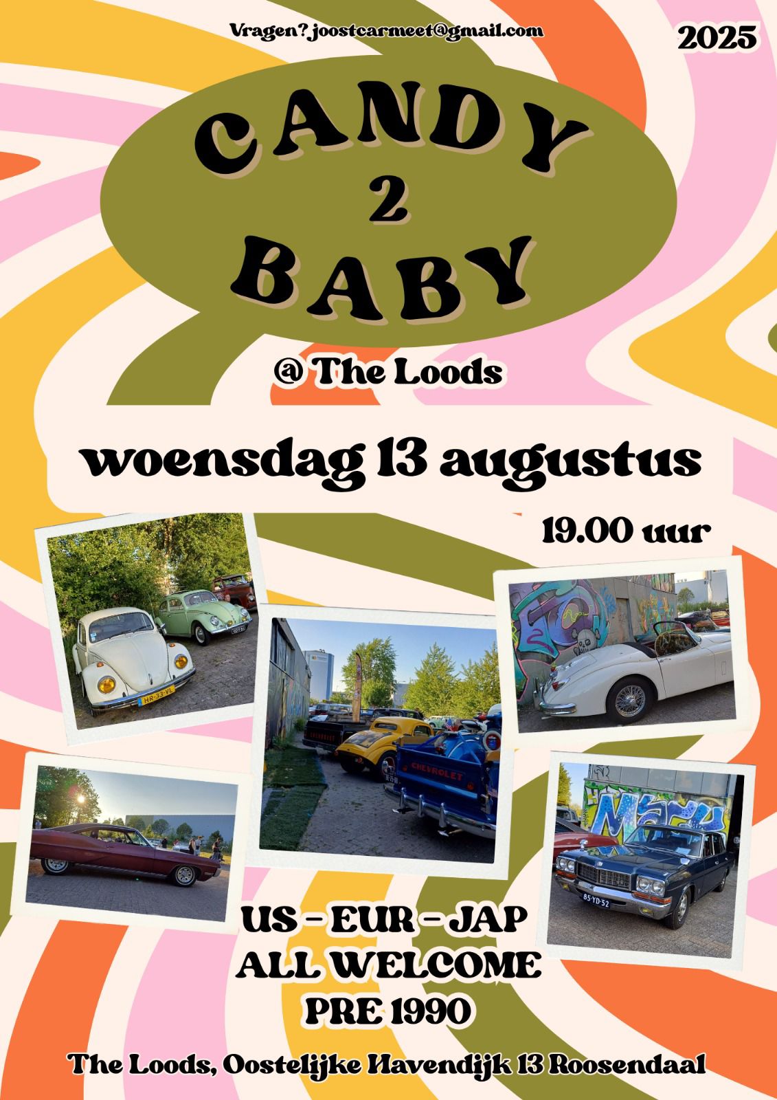 Op woensdagavond 13 augustus. Roosendaal pre 1990 meeting cruise in. Van harte welkom bij Candy Baby. Gratis entree. Unieke locatie.