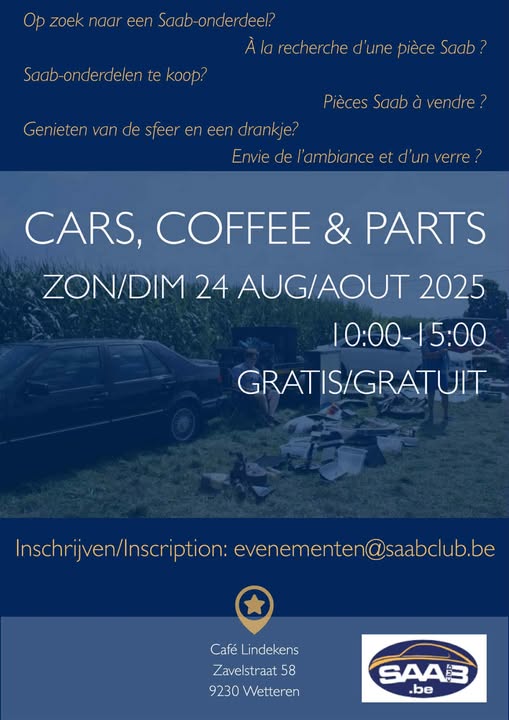 Website van organisator https://www.saabclub.be/event/nationale-onderdelendag-scb-cars-coffee-parts-wetteren/