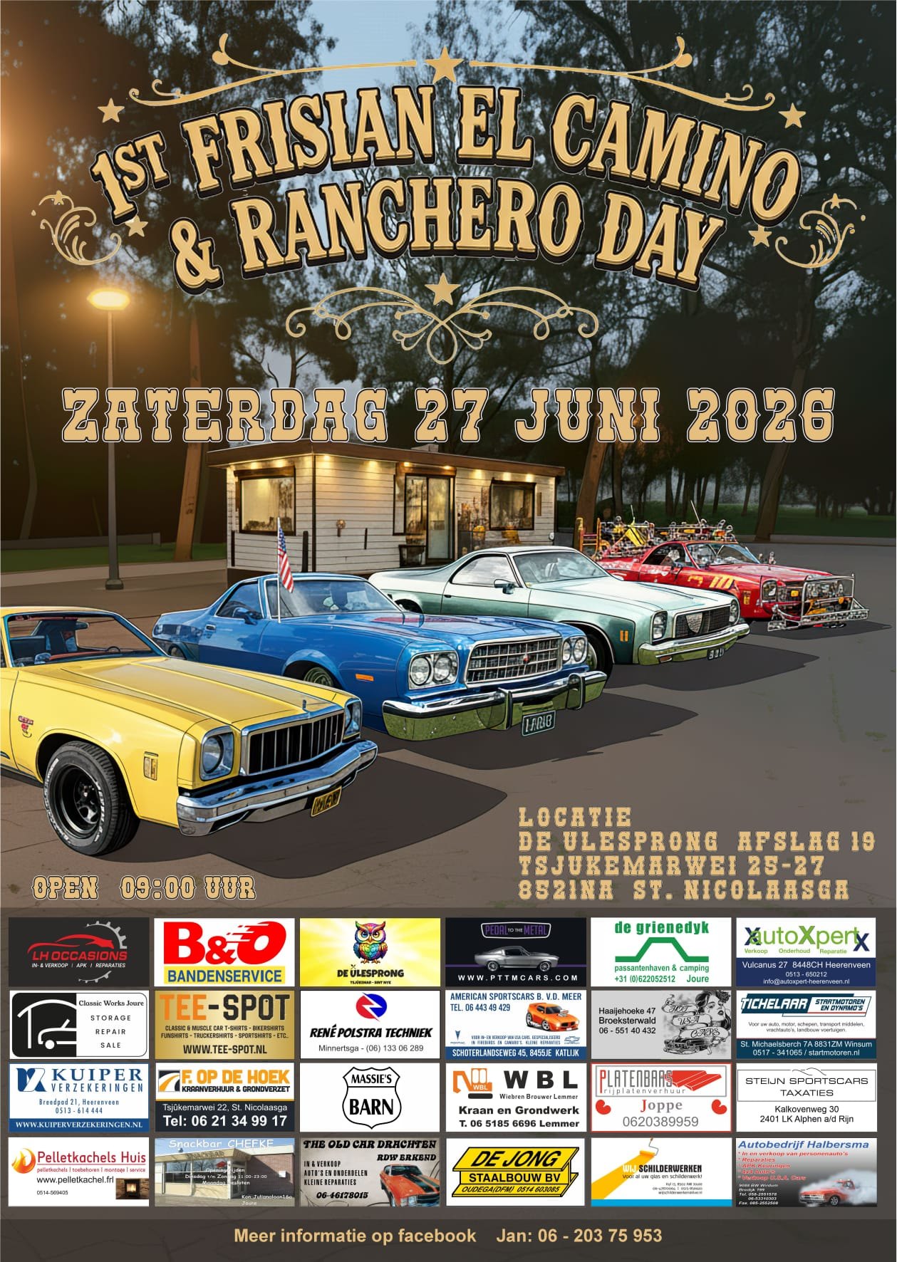 | Website van organisator | https://www.facebook.com/events/d41d8cd9/1ste-frisian-el-camino-ranchero-day/858608587100416/ |