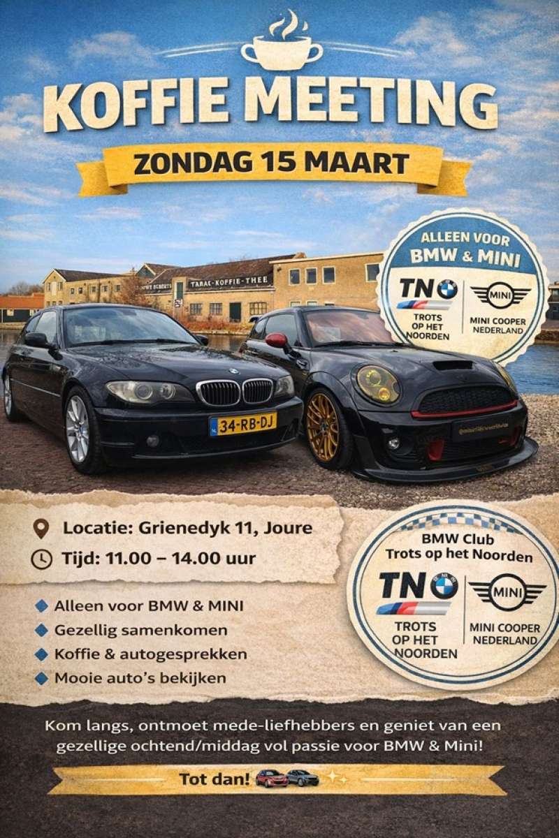 Kom langs, ontmoet mede-liefhebbers en geniet van een gezellige ochtend/middag vol passie voor BMW & Mini!