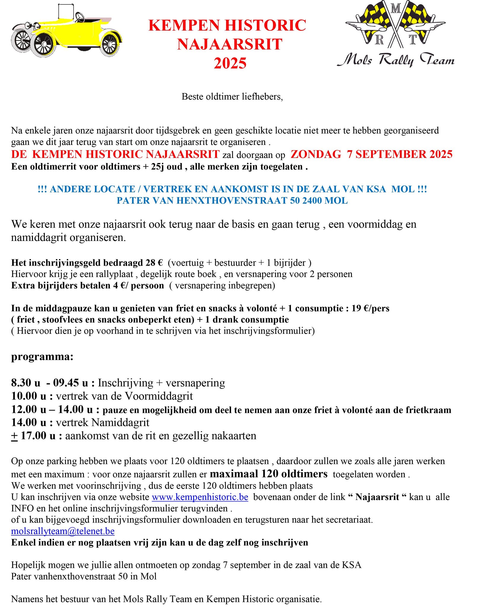 Na enkele jaren onze najaarsrit door tijdgebrek en geen geschikte locatie niet meer te hebben georganiseerd, gaan we dit jaar terug van start om onze najaarsrit te organiseren.