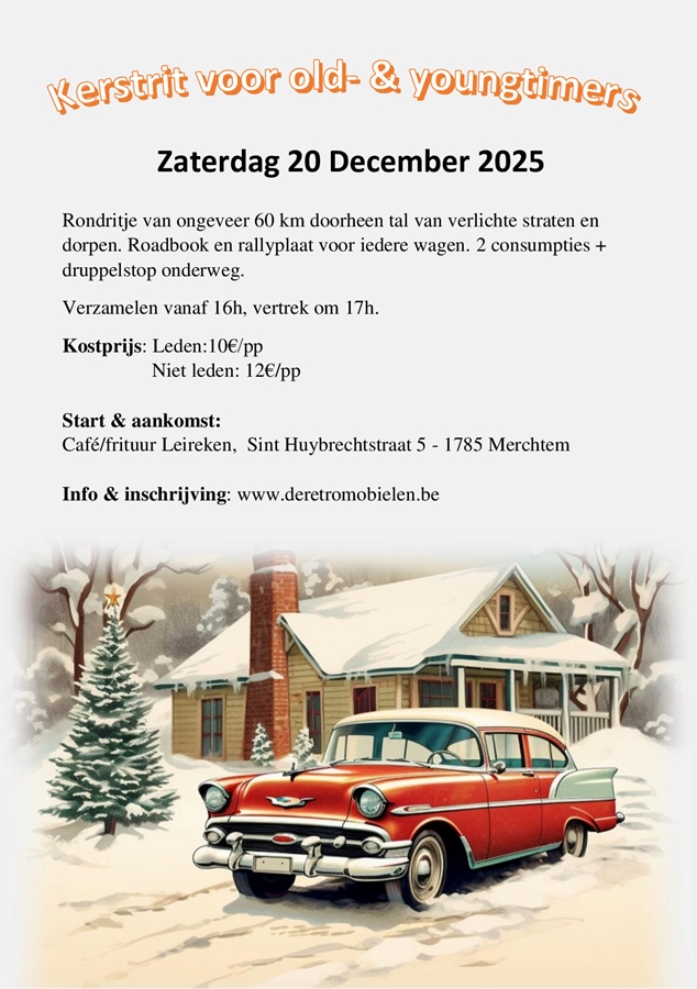 Het is niet altijd evident om in de winterperiode met onze oldtimers te rijden, daarom zijn dagelijkse wagens ook welkom, uiteraard een beetje in Kerstsfeer versierd.