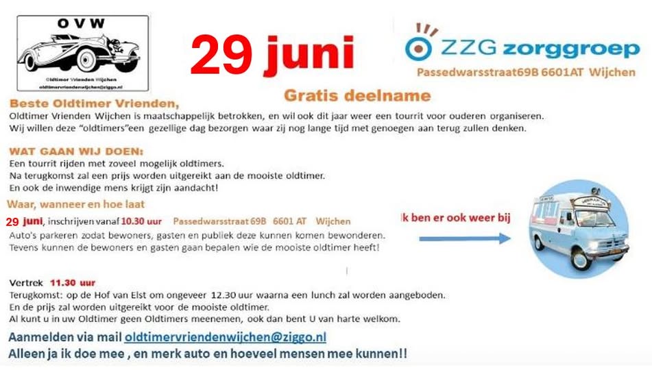 | Email van organisator | oldtimervriendenwijchen@ziggo.nl |