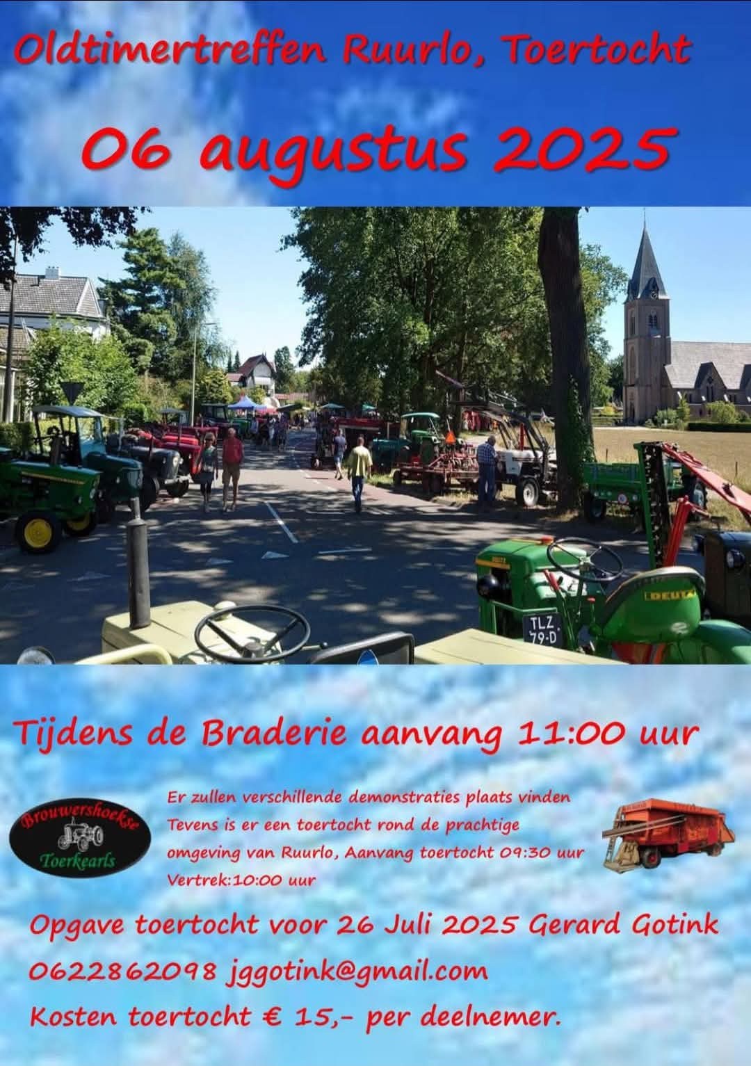 Tevens is er een toertocht rond de prachtige omgeving van Ruurlo, aanvang toertocht 09.30 uur, vertrek om 10.00 uur