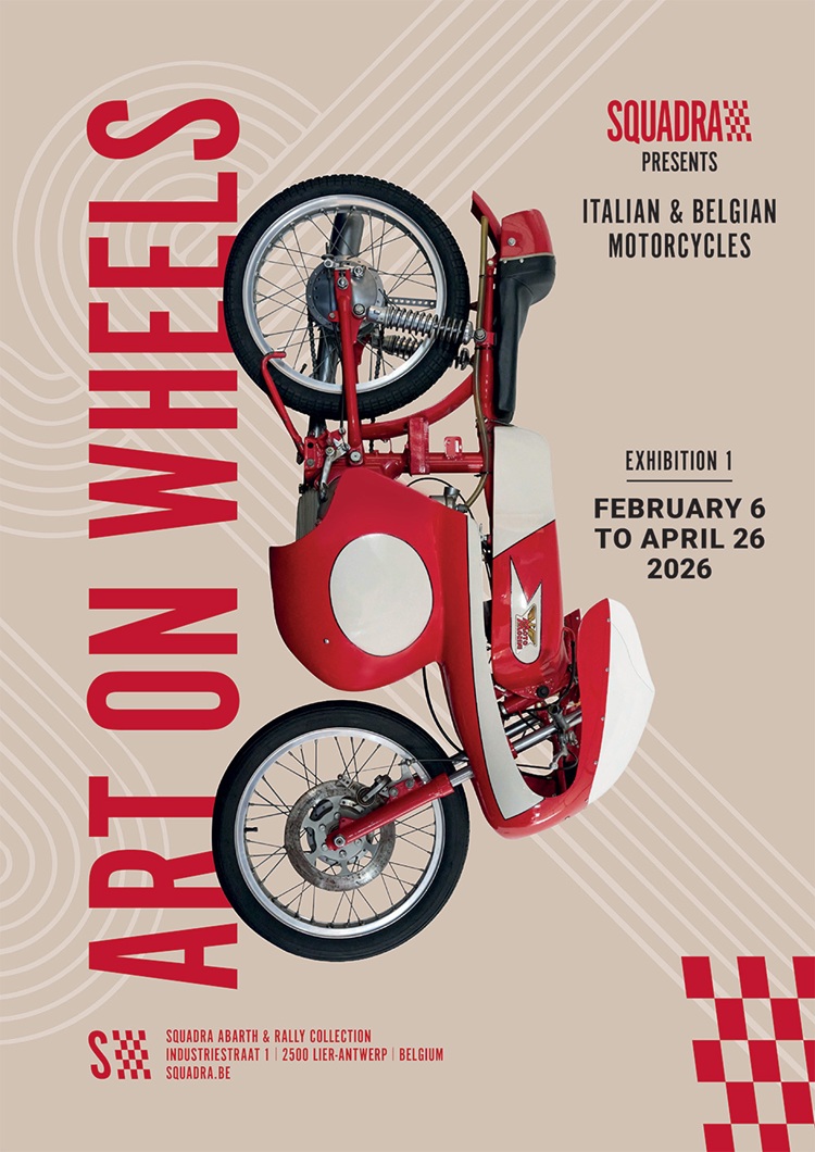 Nog geen jaar na de officiële opening kondigt Squadra zijn allereerste thematentoonstelling aan: "Art on Wheels" neemt je mee op een fascinerende reis door de wereld van de motorfiets, met een bijzondere focus op Italië en België – twee landen met rijke maar verschillende motortradities.