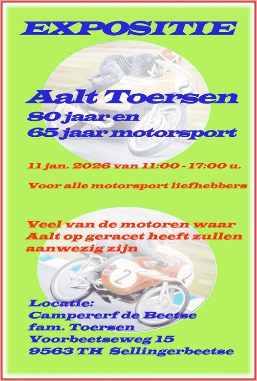 Veel van de motoren waar Aalt op geracet heeft zullen aanwezig zijn.
